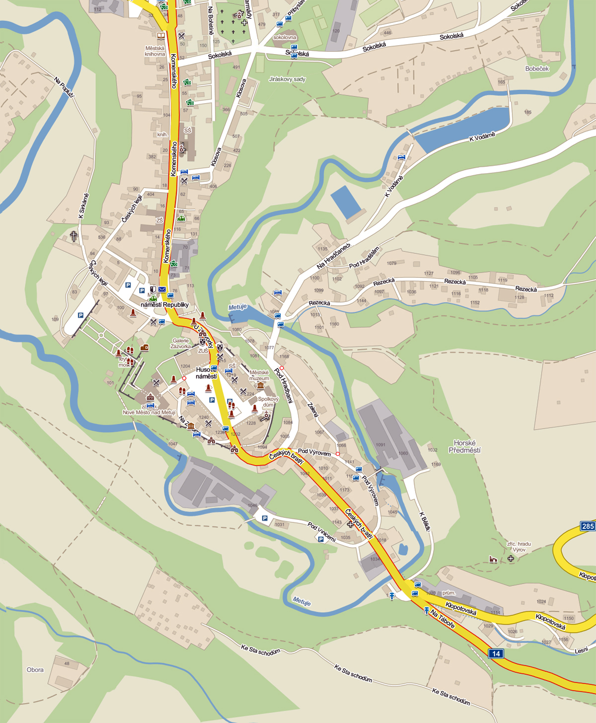 Podrobná mapa Nového Města nad Metují.